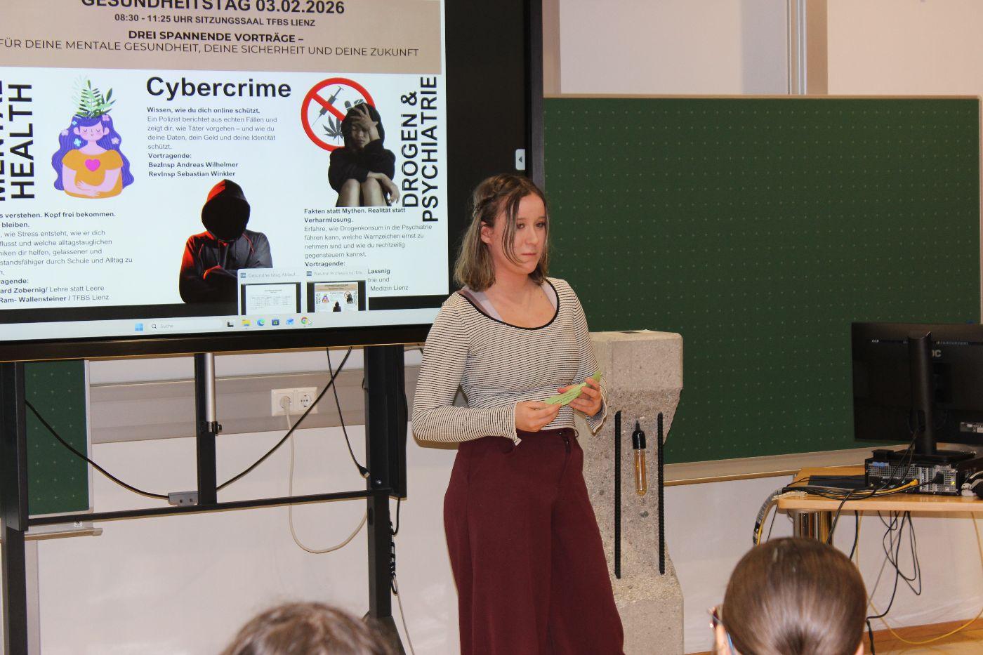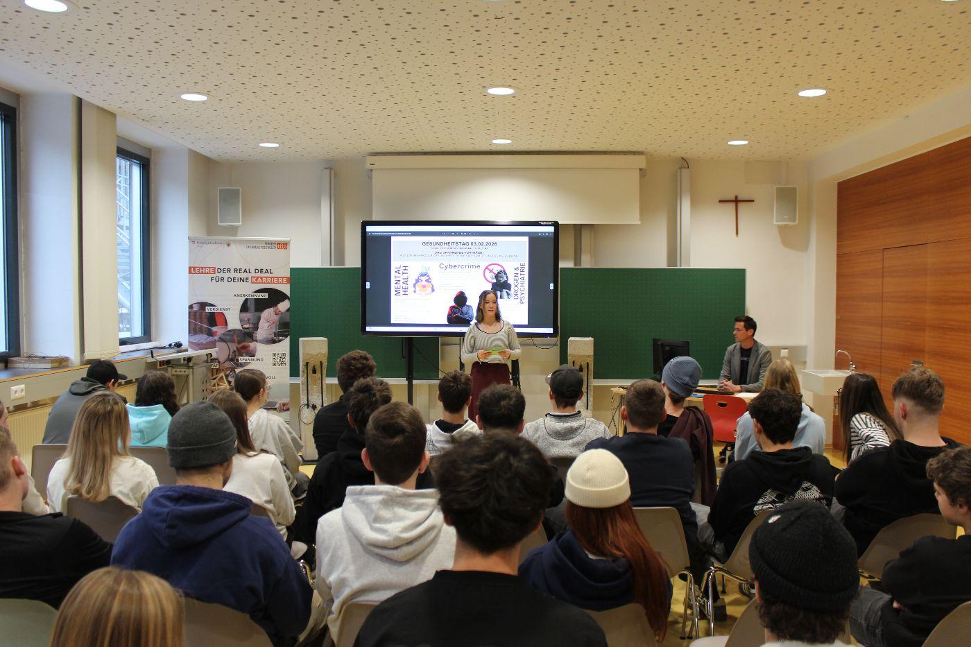 Gesundheitstag von TFBS Lienz 03. Februar 2026 1STL 2025/26 Der Gesundheitstag 2026 - organisiert von der 1STL - war ein Vormittag der viele wertvolle Informationen und Tipps rund um das Thema Gesundheit und Resilienz beinhaltete. Wir bedanken uns herzlich bei allen Referenten.
